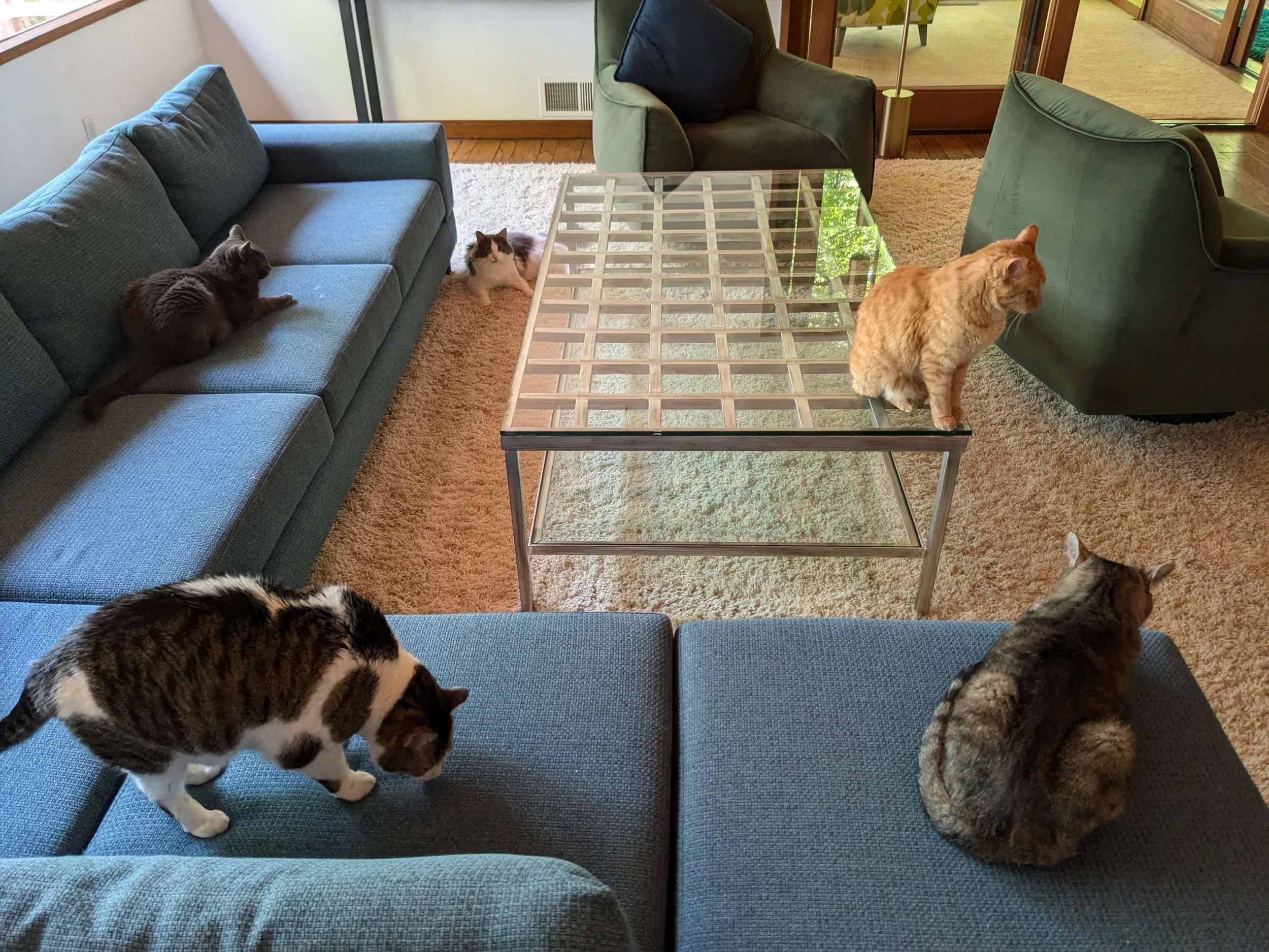 During the second week of July, the Connecticut campus was packed up and moved to Pennsylvania along with Mr. A, DJ & the Faculty. For those of you who have been following us for awhile, you may remember our move from Illinois to Connecticut. As the faculty adjusted, dynamics shifted. Well, it's happened again. Custard and Loganberry, who have previously required constant separation, are now getting along again and we even have pictures to prove it!